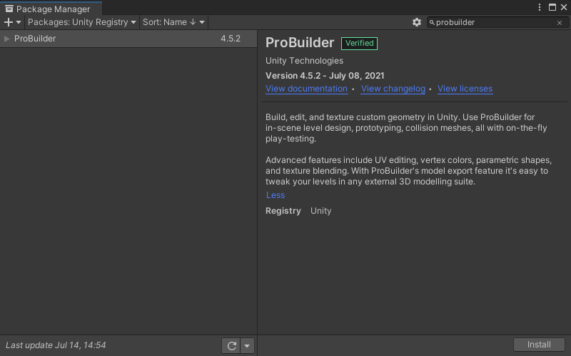 2、Unity建模插件:ProBuilder