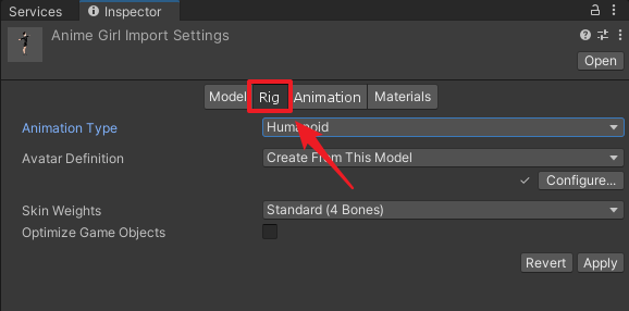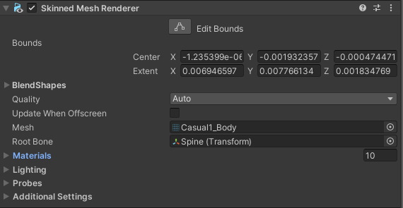 注:你也可以直接使用SkinnedMeshRenderer组件,与MeshFilter和MeshRenderer的区别我下文会讲。