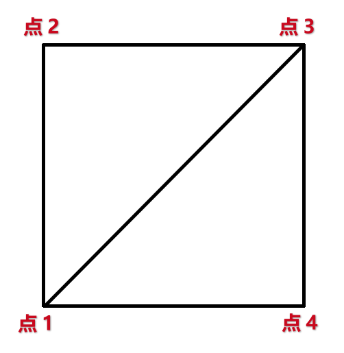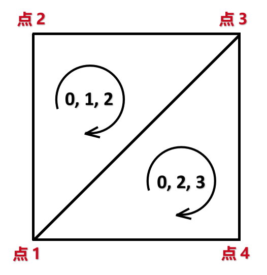 两种切分方法对应不同的三角形序列,假设 法线方向 是垂直于屏幕从内指向屏幕外的话,第一种切分方式的三角形序列如下: