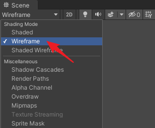将Scene视图的模式设置为Wireframe,如下