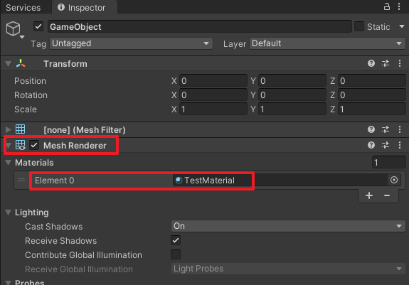 创建一个空物体,挂上MeshFilter和MeshRenderer组件。