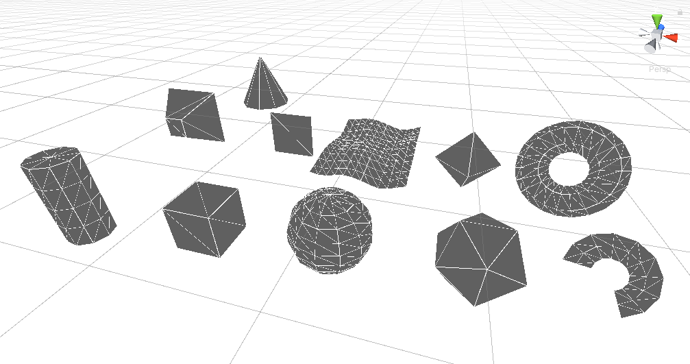 下面这些就是使用纯代码创建出来的几何体网格,感兴趣的同学可以下载项目源码下来学习。