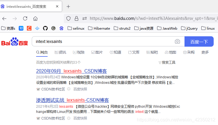 搜索示例:intext:LexSaints