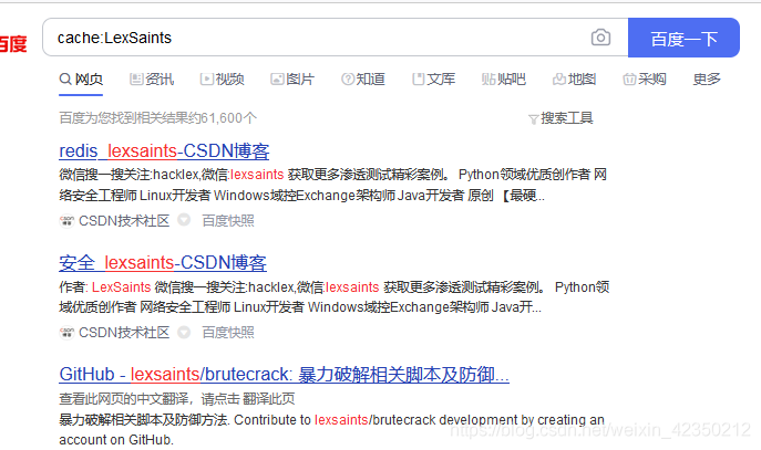 搜索示例:cache:lexsaints