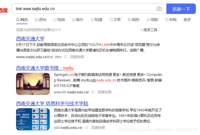 搜索示例:link:www.swjtu.edu.cn
