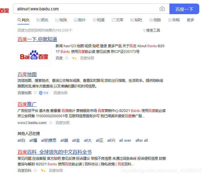 搜索示例:alliurl:www.baidu.com