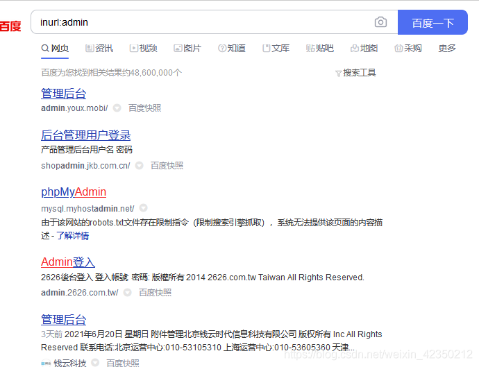搜索示例:inurl:admin