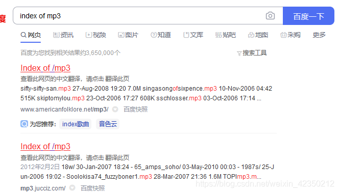 4、 index of 对搜索引擎结果进行二次检索