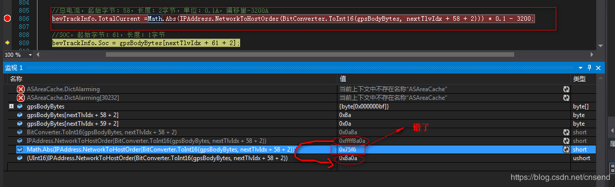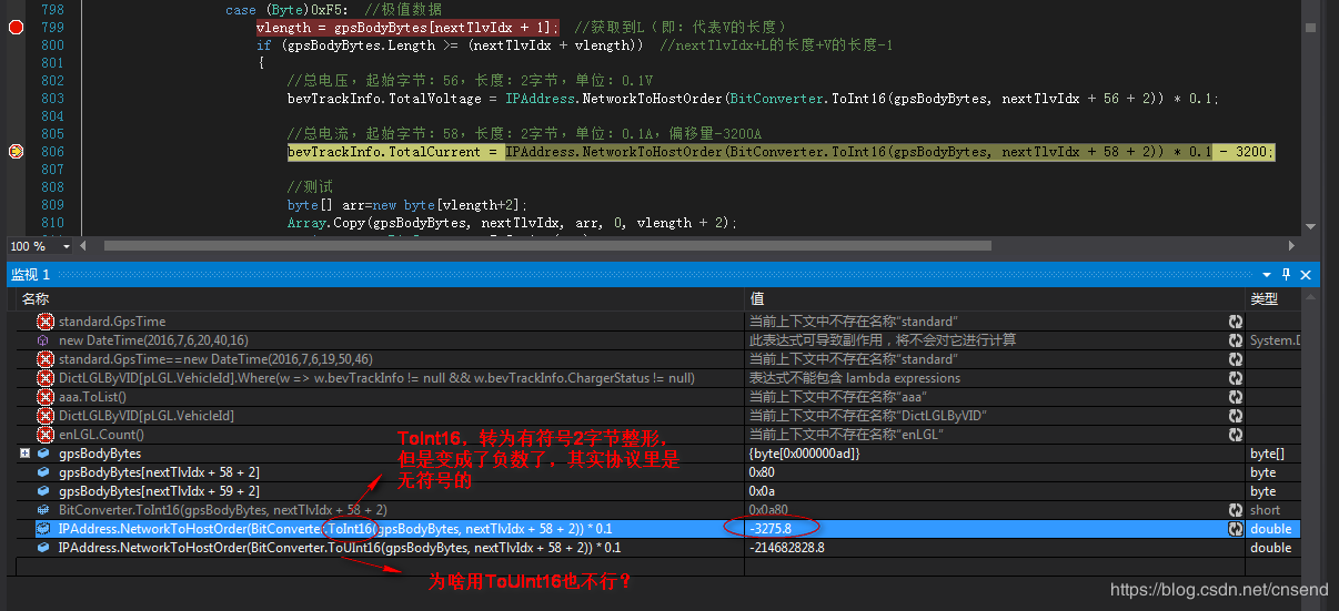 1、问题:网关解析正确,我.net这边解析错误,原因是,本来是无符号的,我搞成了有符号的了。