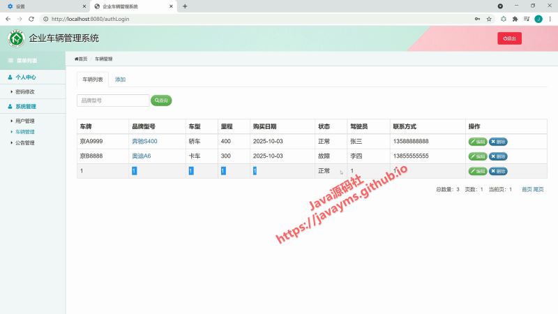 以上就是坚强小鸭子最近收集整理的关于基于javaweb+jsp实现企业车辆管理系统的全部内容,更多相关基于javaweb+jsp实现企业车辆管理系统内容请搜索靠谱客的其他文章。
