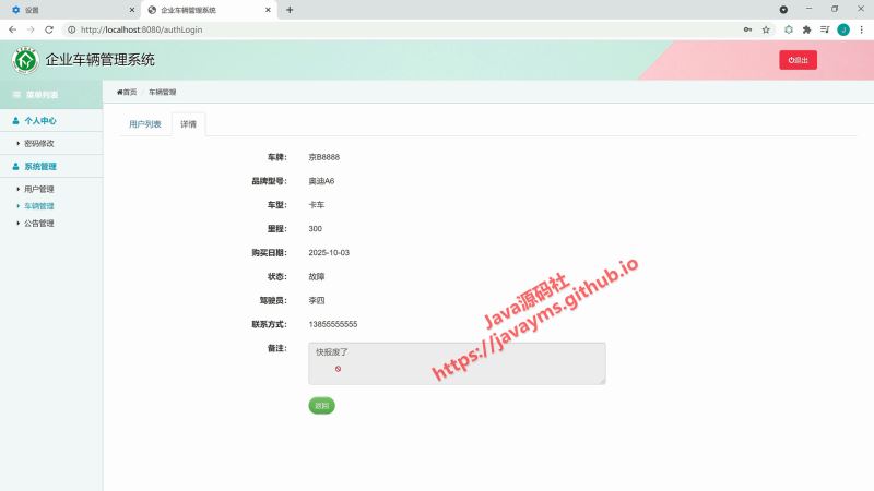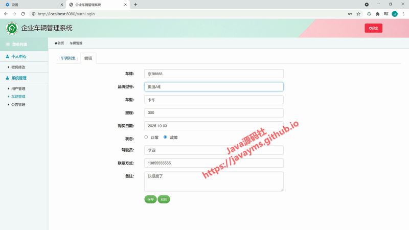 以上就是基于javaweb+jsp实现企业车辆管理系统的详细内容,更多关于javaweb jsp 的资料请关注靠谱客其它相关文章!