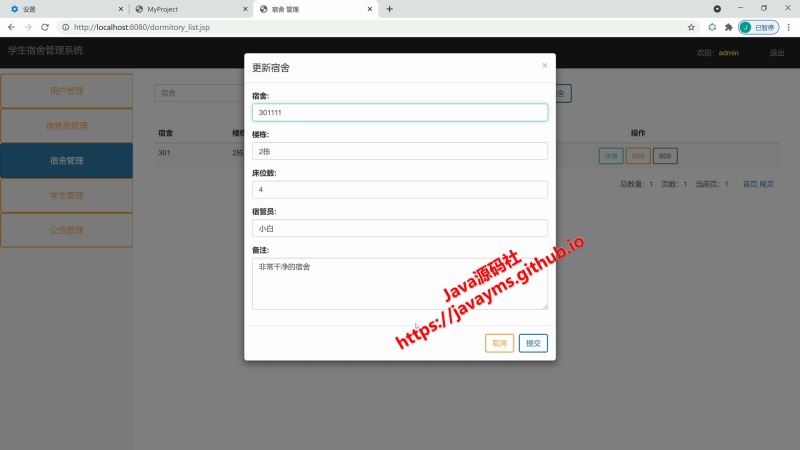 以上就是基于javaweb+jsp实现学生宿舍管理系统的详细内容,更多关于jsp学生宿舍管理系统的资料请关注靠谱客其它相关文章!