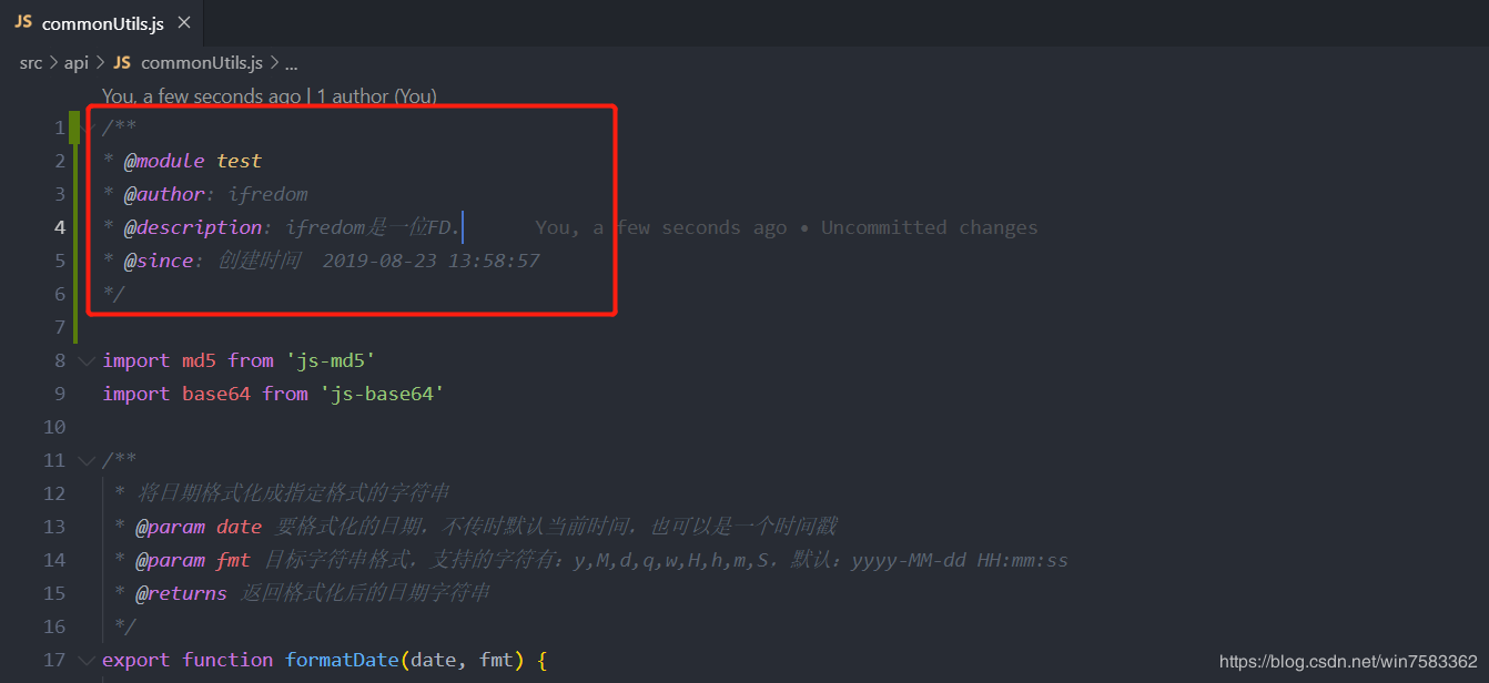 在文件头添加用户作者,逼格满满,效果如图
