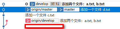 6、可以看到master上之后又1条提交记录了,而develop上还有3个提交记录