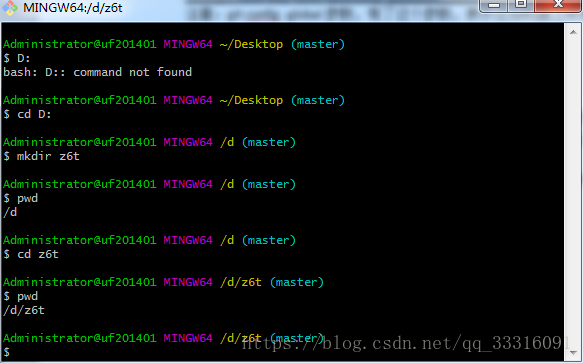 创建一个版本看也非常简单,如下在D盘目录下新建一个z6t版本库。