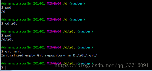 通过命令git init把这个目录变成git可以管理的仓库,如下: