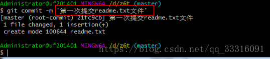 git commit -m “XX” 提交文件 -m后面的是注释