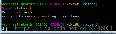 继续使用git status来查看下结果,如下: