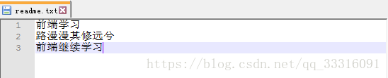 如上,我们已经学会了修改文件,现在继续对readme.txt文件进行修改,在增加一行,内容如下: