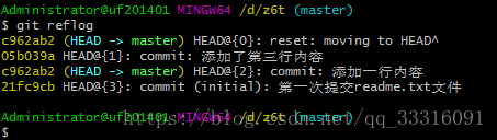 git reflog 查看历史记录的版本号id