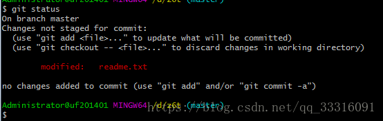 说明没有任何文件未提交,下面继续修改readme.txt,内容,比如添加一行内容。