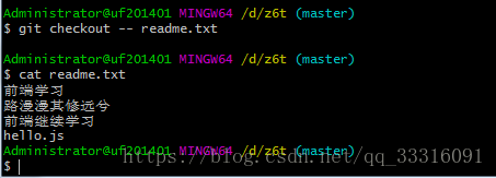 git checkout -- readme.txt (注意文件名前面必须有空格)