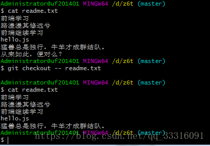 四:git撤销修改和删除文件操作。