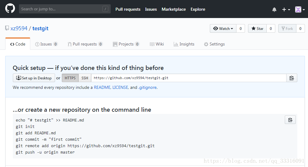 Git remote add origin https://github.com/xz9594/testgit.git