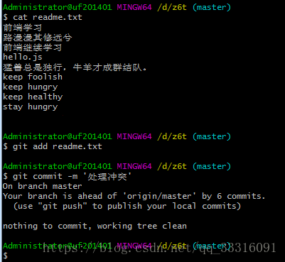可以看到,readme.txt文件内容从一行变成了两行,添加了一行下边的内容。
