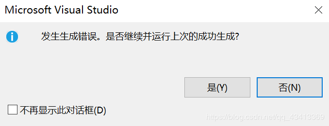 主要表现为:发生生成错误。是否继续运行上次的成功生成