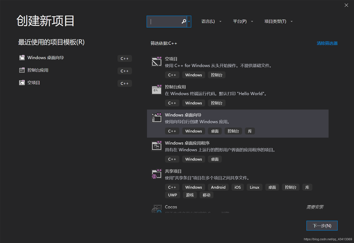 如图:创建Windows桌面向导,点击下一步