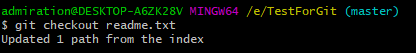 如果对文件进行了错误的修改,且已经Ctrl+S保存,但还没有提交,想要撤销之前的修改可以使用checkout命令