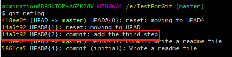 比如我先在readme.txt中添加了一行,然后git add readme.txt,git commit -m "add the third step",添加并提交到仓库
