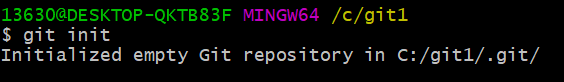 我在C盘下创建文件夹git1,当作我的本地仓库,在git bash中打开: