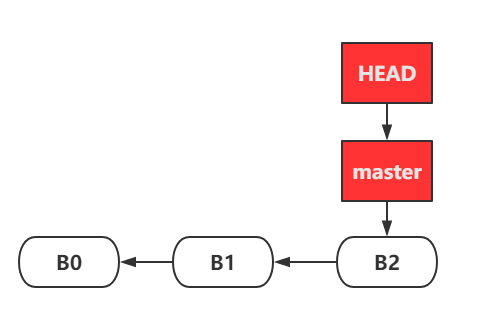 假设现在只有一个默认的 master 分支,并提交了3次,B0、B1和B2都是提交对象。