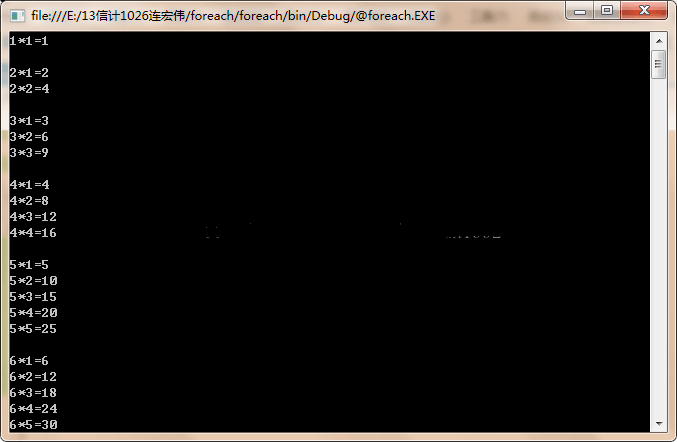 在看到C#流程控制结构的这一章节,看到了一个很好的关于C#读写操作的一个例子。这个例子就是典型的for迭代语句编写“小九九表”。