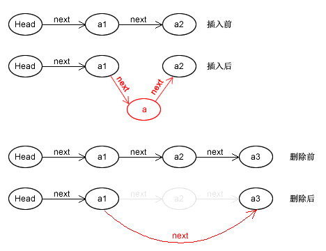 可以看到:链表在元素插入/删除时,无需对后面的元素进行移动,只需要修改自身以及相邻节点的next指向即可,所以插入/删除元素的开销要比顺序表小得多。但是也应该注意到,其它操作比如:查找元素,反转倒置链表等,有可能需要遍历整个链表中的所有元素。