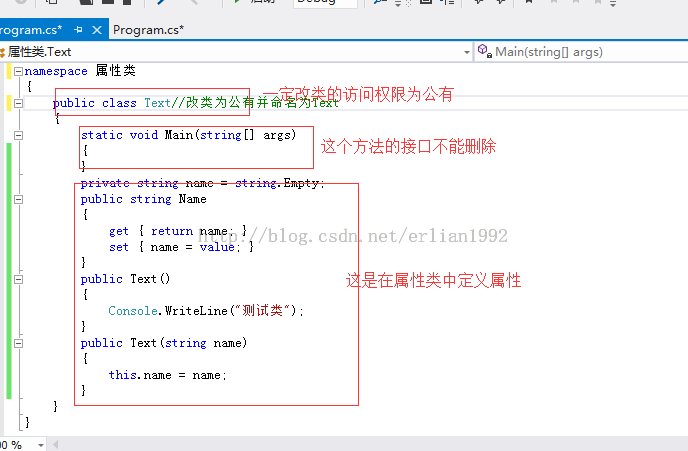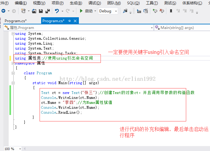 (4)在Program类中粘贴所属于它的代码段,点击运行与上述结果相同