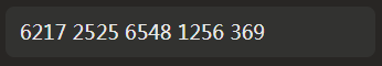 self.bankCard = value.slice(0, 4) + ' ' + value.slice(4, 8) + ' ' + value.slice(8, 12) + ' ' + value.slice(12, value.length)