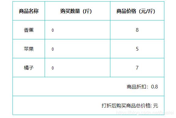 <div id="jiage">打折后购买商品总价格: 元</div>