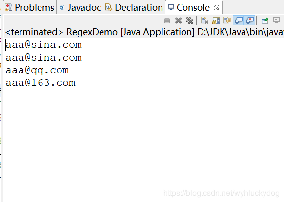 4.建立正则规则,因为这里我们是爬去网页中的邮箱信息,所以建立匹配 邮箱的正则表达式:String regex="w+@w+(.w+)+";