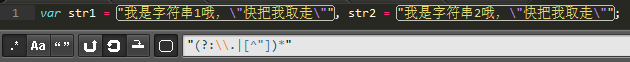转义的规则是 后面跟着一个字符,所以我们用 \. 去匹配它,就有了这样的正则 /"(?:\.|[^"])*"/g