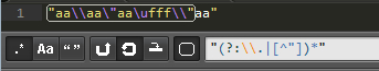 消耗掉正确的转义的意思是,比如 "aa\aa"aaufffaa" 都会被正常匹配,因为这些都在正常的转义。