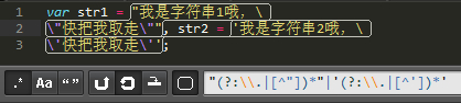 var str1 = "我是字符串1哦,"快把我取走"", str2 = "我是字符串2哦,"快把我取走"";