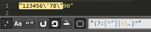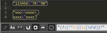 还是这个字符串: "123456'78"90" , 正则 /"(?:[^"\]|\[dD])*"/