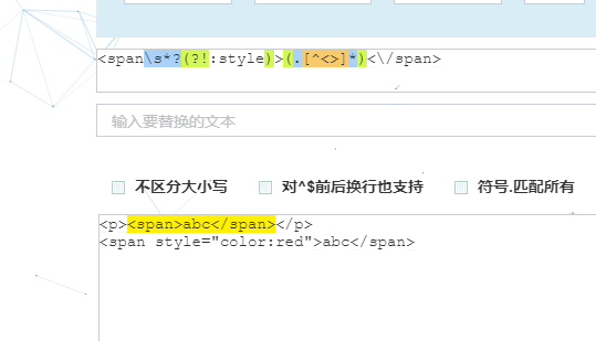 下面是靠谱客小编写的打算将不带style的span替换为空的正则。