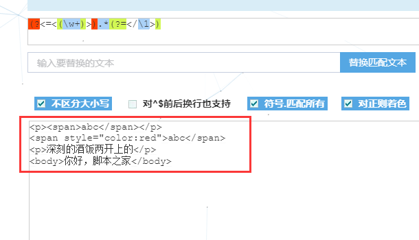 综上,改表达式匹配的是类似html标签这种内容的,如<body>你好,正则!</body>
