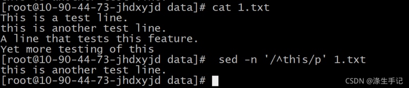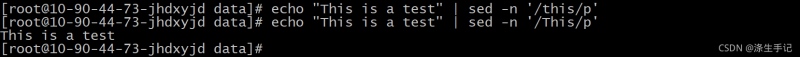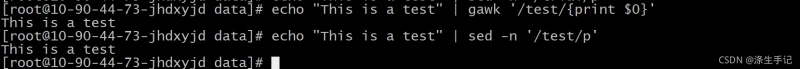 模式定义了一个单词 test 。 sed 编辑器和 gawk 程序脚本用它们各自的 print 命令打印出匹配该正则表达式模式的所有行。由于echo 语句在文本字符串中包含了单词 test ,数据流文本能够匹配所定义的正则表达式模式,编辑器能显示该行。