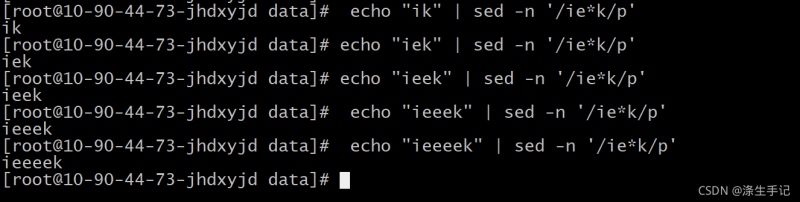 正则表达式模式利用通配符来描述数据流中的一个或多个字符。 Linux 中有很多场景都可以 使用通配符来描述不确定的数据。【*】号在我们工作中就比较常用。