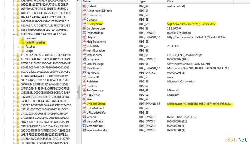 在左侧显示的数字并不是用于msi卸载的产品序列号。我们注意到有一个UninstallString属性,这个属性就是卸载这个程序的命令及参数: